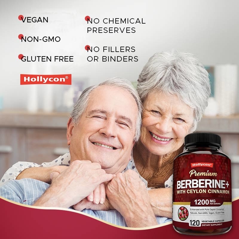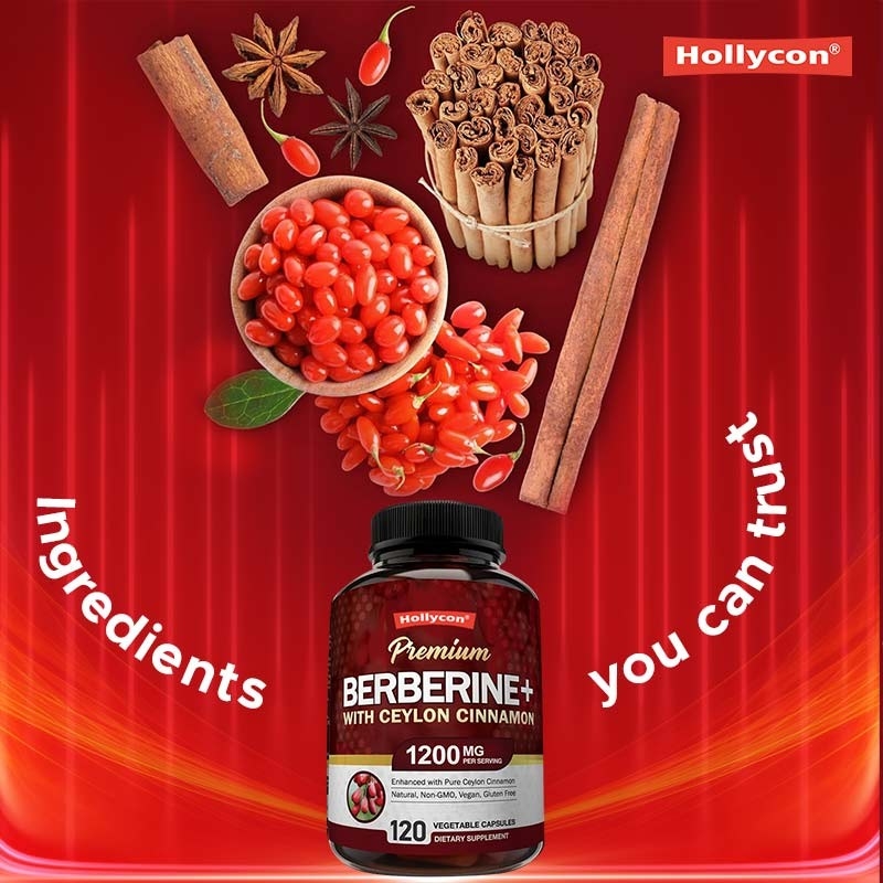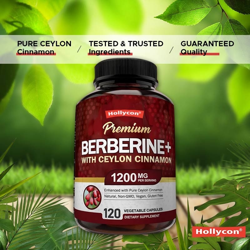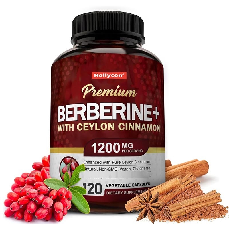 Hollycon Premium Berberine HCL 1200mg, 120 κάψουλες - Πλην καθαρού αληθινού κανέλας Ceylon - Berberine HCI root supplement pills