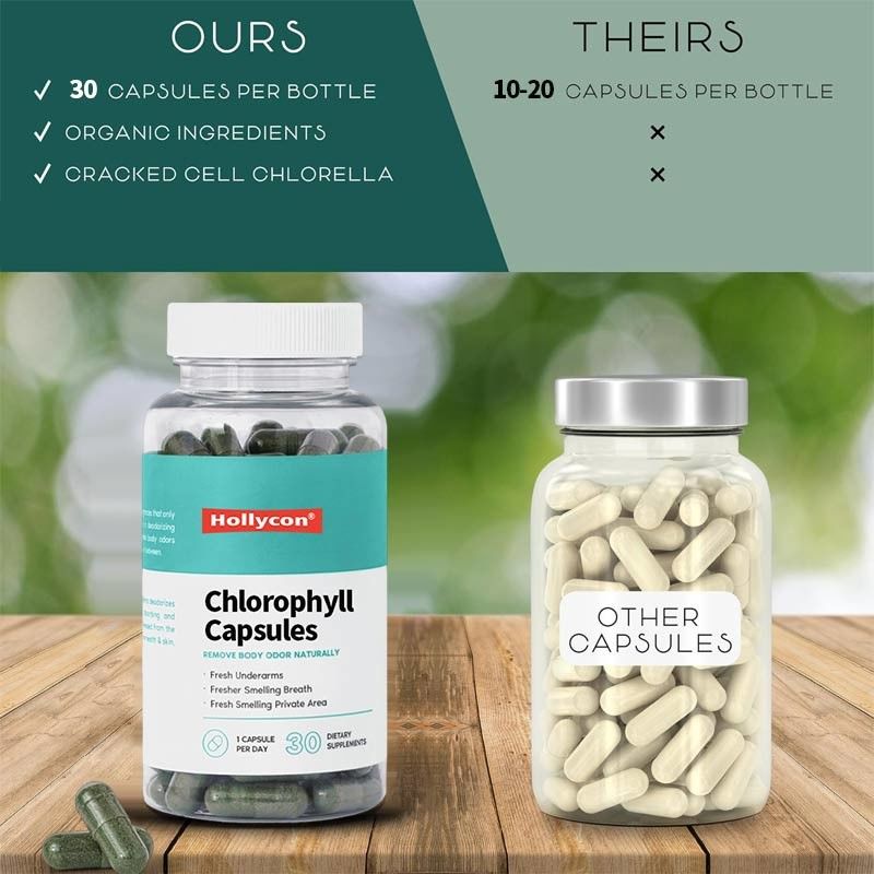 Οι κάψουλες χλωροφύλλης παρέχουν έναν φυσικό και ολιστικό τρόπο για να αναζωογονήσετε το σώμα σας.και βελτιώνει την ακτινοβολία του δέρματος ενώ αυξάνει τα επίπεδα ενέργειαςΣχεδιασμένα για καθημερινή χρήση, είναι μια εξαιρετική προσθήκη στη ρουτίνα ευεξίας σας για έναν πιο υγιή, αναζωογονημένο εαυτό.