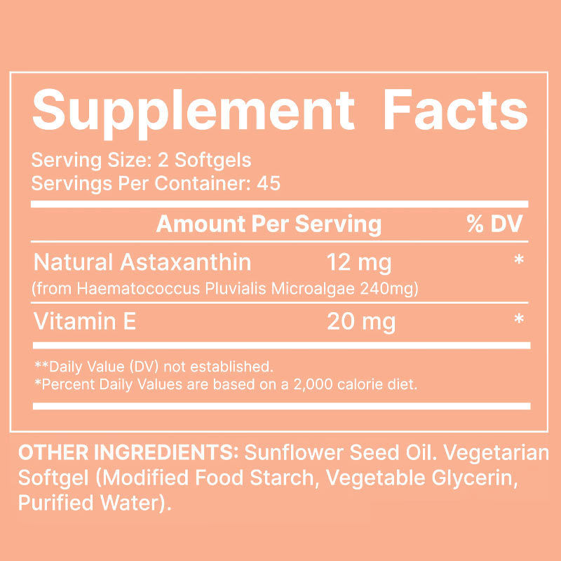 12mg φυσικής ασταξανθίνης + 20mg βιταμίνης Ε δημιουργεί ένα λιποδιαλυτή αντιοξειδωτικό δίκτυο για 3 φορές μεγαλύτερη προστασία.