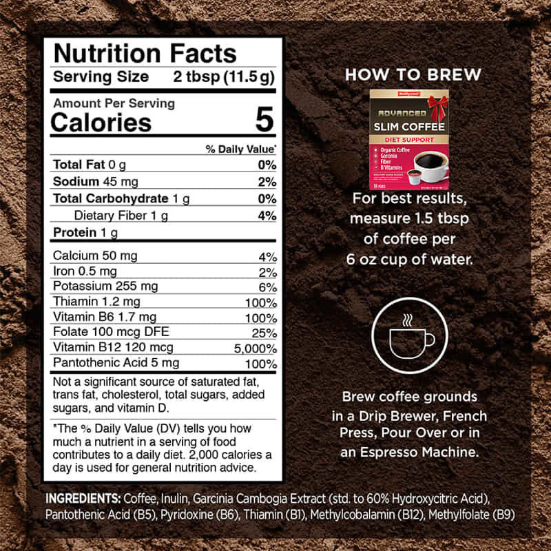 Λάβετε υποστήριξη από το Garcinia Cambogia που περιέχει υδροξυκιτρικό οξύ και ινουλίνη αγκινάρας, μια φυσική ίνα. Ο καφές σας μόλις αναβαθμίστηκε, με εσάς στο μυαλό.