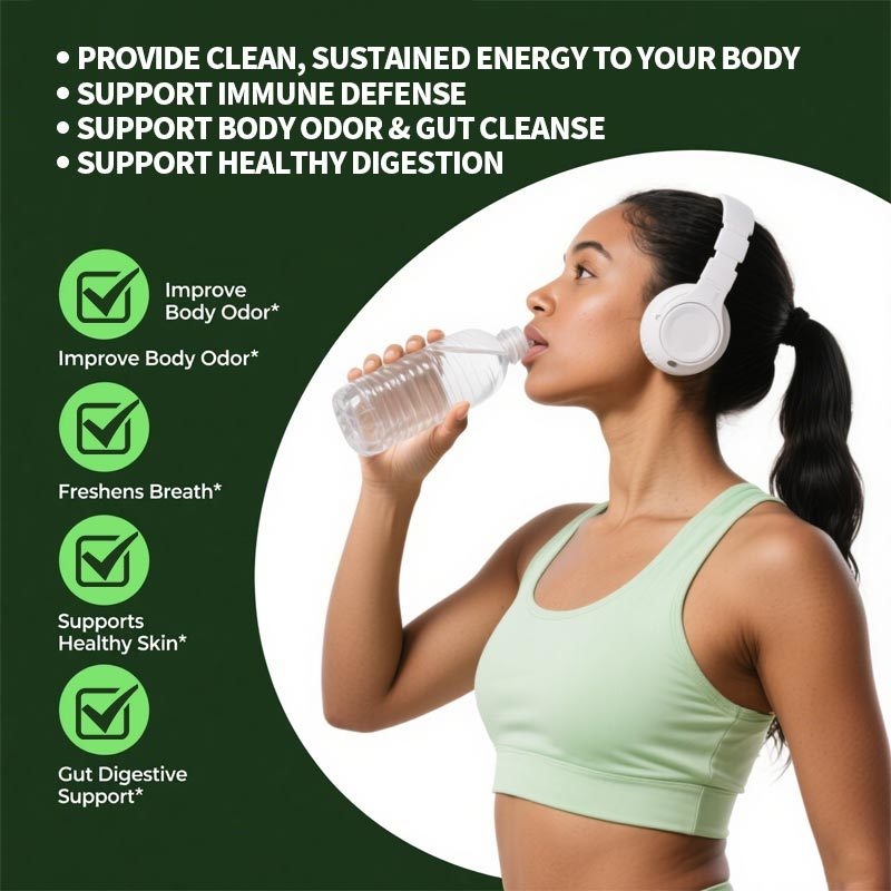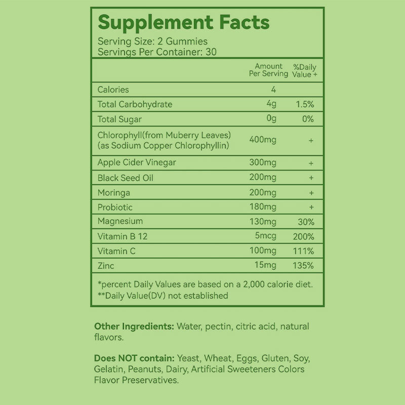Κύριο Συστατικό:Χλωροφύλλη, Μηλόξυδο, Έλαιο Μαύρου Σπόρου