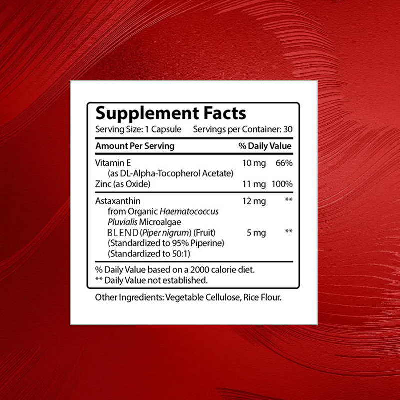 Μεγιστοποίηση Δυνατοτήτων - Η Βιταμίνη Ε, ο Ψευδάργυρος και η BioPerine έχουν ιδιότητες που μεγεθύνουν τα οφέλη της ασταξανθίνης και αυξάνουν την επίδρασή της.