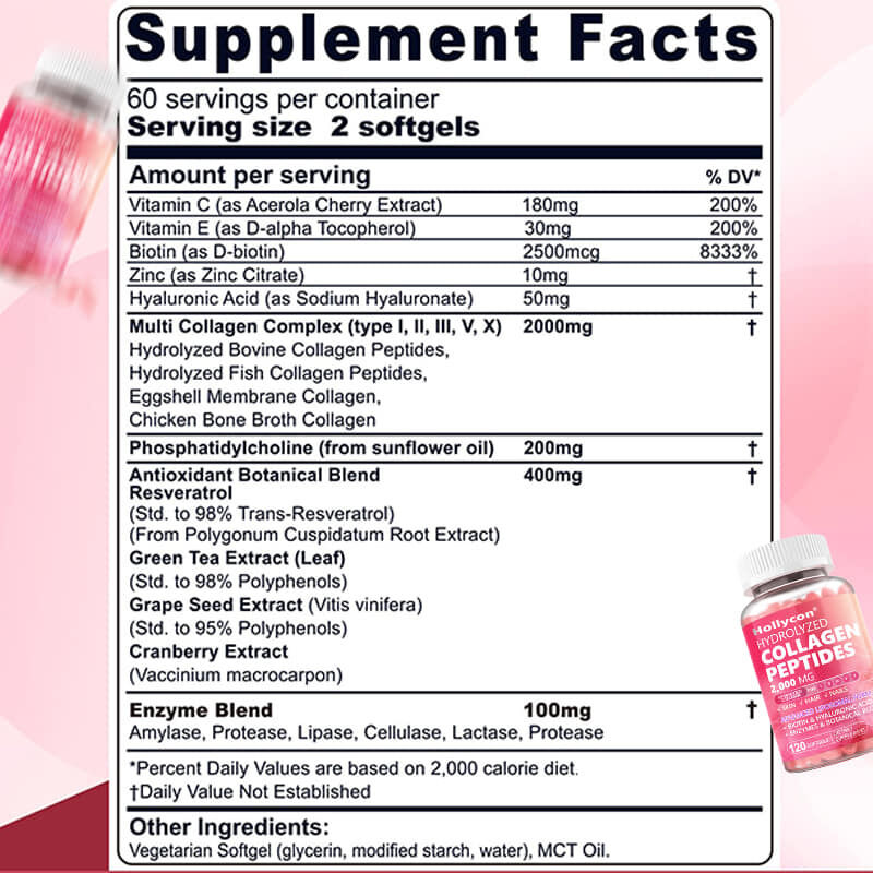 Κάθε μερίδα περιέχει 2000 mg κολλαγόνων πεπτιδίων (1200da πεπτιδικές αλυσίδες μετά την υδρόλυση) για άμεση απορρόφηση.Η λεκιθίνη ηλιέλους προστίθεται για να σχηματιστεί λιποσωματικό κολλαγόνο για την καλύτερη διατήρηση της συγκέντρωσης και την ενίσχυση της απορρόφησης.